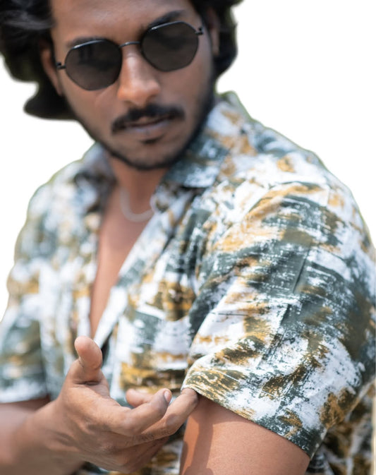 Men's Abstract Print Short Sleeve Shirt, Casual Button-Down Collar-PRINT HALF Shirt