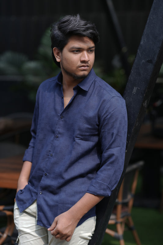 Men's Textured Cotton Casual Shirt, Long Sleeve, Iron Less-VAPL Shirt