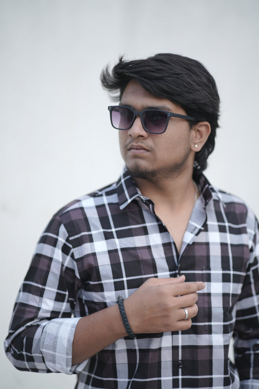 Men's Casual Plaid Button-Down Shirt, Long Sleeve, Check Pattern-RUBI2 Shirt