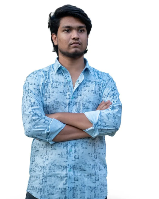 Men's Abstract Print Button-Down Shirt, Long Sleeve, Pattern, Casual Cotton-RAAYAN Shirt