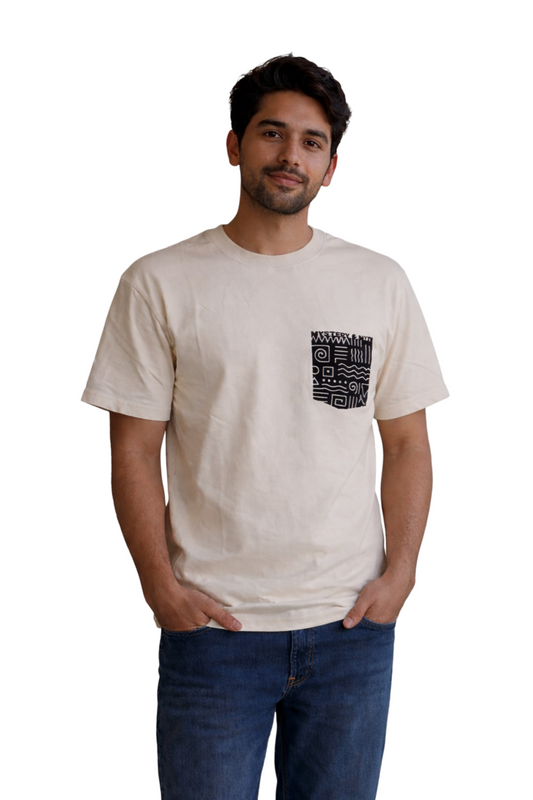 Mystery & Myth Beige Pocket HD Print 240 GSM Unisex Cream Color Oversize T-Shirt